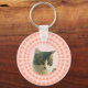 Cute tabby cat surrounded by heart circles on coral pink background. Photo can be customized.