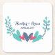 Colourful and whimsical Hearts and Vines Wedding Paper Coasters with a cute stylized vine and sweet heart border in a pretty combination of turquoise, blue, and red. This trendy and modern design is easy to customize with your wedding details.