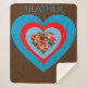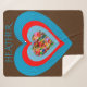 Colourful hearts on a brown Sherpa blanket with personalized name.