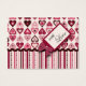 Perfect size for a gift tag to finish off any gift. Punch hole at corner and tie with ribbon or twine. Also a good size Valentine's Day card for the classroom. Rows of hearts with stripe border and ric-rac trim and finished off with a poka-dot bow and "with love" hangtag.