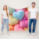 Cuddle up in softness with this fleece blanket adorned with plush pastel hearts in dreamy shades of blue, yellow, pink, and peach. This cozy and colourful blanket is perfect for adding warmth and cheerful style to bedrooms, living rooms, or as a delightful gift for anyone who loves cute and comforting decor.