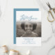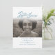 Funeral program order of service double-sided simple blue grey and white in our hearts forever funeral program. Simple yet elegant program, replace sample text and photo holders with your own three special photos and information details. Original typography and in our hearts forever graphic and design by Sarah Trett. www.sarahtrett.com for www.mylittleeden.com (Photo credit by Guilherme Stecanella on Unsplash model photo is just a placeholder image for you to replace).