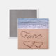 Two intertwined hearts on a sandy beach with forever in script font. Fun design for the destination wedding couple.