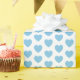 A wrapping paper with light blue hearts on a white background. You can choose the background colour of your preference.