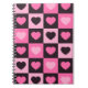 Hearts light pink hot pink dark burgundy Chequered Notebook