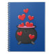 An illustration of a cute cartoon black cauldron where a witch is making a spell for love potion full of red hearts for valentine's day. This cute magical love design is a gift idea for witchcraft and magic lovers and hearts day lovers.