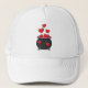An illustration of a cute cartoon black cauldron where a witch is making a spell for love potion full of red hearts for valentine's day. This cute magical love design is a gift idea for witchcraft and magic lovers and hearts day lovers.