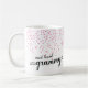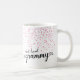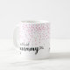 Grammy coffee mug with a beautiful heart calligraphy font with a field of tiny pink hearts. Visit our shop to view this mug in a large assortment of grandmother names.