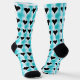 This graphic design, seems to glow, with black hearts, upon white, squares-displayed, on an abstract, chequerboard, pattern of, turquoise, shaded with blue.