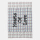 Hearts Of Love is a playful whimsical design sure to capture anyone's heart! This handcrafted design consists of pink stripes layered over an abstract of hearts & flowers and blue & white stripes across the kitchen towel all amidst a blue & white motif!
