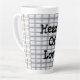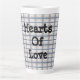 Hearts Of Love is a playful whimsical design sure to capture anyone's heart! This handcrafted design consists of pink stripes layered over an abstract of hearts & flowers and blue & white stripes across the latte mug all amidst a blue & white motif!