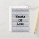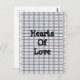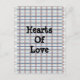 Hearts Of Love is a playful whimsical design sure to capture anyone's heart! This handcrafted design consists of pink stripes layered over an abstract of hearts & flowers and blue & white stripes across the postcard all amidst a blue & white motif!