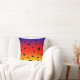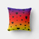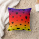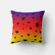 Hearts, Cushion, Featured on a background of purple, pinks, yellow, and orange are black heart shapes of different sizes,