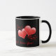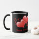 Give a romantic gift with this elegant coffee or tea mug. This design has red hearts and customizable black background. Give as a Valentine gift or change the text to the occasion of your choice.