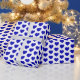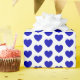 A wrapping paper with royal blue hearts on a white background. Customize the background colour among other options.
