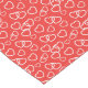 Table runner to accent your table decor is shown in a red and white hearts print.