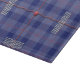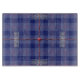 We call the original design by HomeWare on this 11”x8” Cutting Board “Mad Plaid in Blue”. The pattern is a basic plaid in shades of heather blue. Over this background are two wavy red lines, one horizontal and one vertical, which cross through the centre of the design. The lines are three dimensional, throwing shadows on the plaid, and there is a round red button in the centre, where the lines intersect. Over the far ends of the red lines, on four sides, there are blocks of textured, wavy white lines. There are also red dotted lines running through the lighter blue part of the plaid. It looks a bit like a package, all sealed and taped. Thus the name "Mad Plaid in Blue".