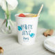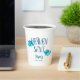 Dreamy and elegant baby shower paper cup featuring illustration of blue clouds. The text says "heaven sent."