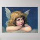 Vintage illustration of a heavenly angel daydreaming on a cloud in the sky.