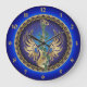 This rock guitar is sent from heaven with golden wings, halo and green Ivy accents, and is set on a blue background with a decorative gold boarder.