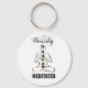 A custom button keychain with the seven chakras symbol and the quote "Heavily Meditated".