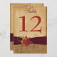 ****You MUST change the number 12 to each number that you need, add it to your cart, then return and repeat the process for all the numbers you need. This gorgeous reversible triple-thick wedding reception table number card in fall colours of burnt orange, rust, gold and brown has images of three dried maple leaves on it and a dark burgundy wine PRINTED ribbon, and a FAUX burlap sack background with an aged burnt paper look overlay on it. All the text is a template. It's perfect for a casual or informal rustic country autumn wedding. The invitation is shown here on triple thick paper so you'll be able to stand it on small easel on your table and you won't need to frame it.****PLEASE NOTE that everything will print as it appears on your monitor, so if you have typos, alignment, or sizing issues, please contact me for help BEFORE you order. I can't help with anything once the order has been placed with Zazzle. If you need any other matching items, please email niteowlstudio@gmail.com.