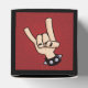 Heavy metal, rock and roll, devil horns hand sign with a black leather studded bracelet.