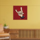 Heavy metal, rock and roll, devil horns hand sign with a black leather studded bracelet.