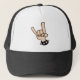 Heavy metal, rock and roll, devil horns hand sign with a black leather studded bracelet.