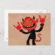 Vector cartoon illustration of a grinning devil character with heavy metal, rock and roll, devil horns hand signs. Made with Adobe Illustrator CS5.