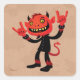 Vector cartoon illustration of a grinning devil character with heavy metal, rock and roll, devil horns hand signs.