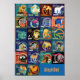 Hebrew Alphabet Poster. 13 x 19" on paper. Fun colours with cute animal designs for every letter of the alephbet.