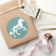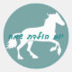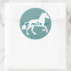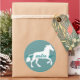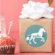 Lovely graphic of a white horse against a tea; background with a frame and the words "Happy Birthday" in a different shade of teal. For the horse-lover.