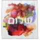 The Hebrew word "shalom" (meaning 'peace' but also 'hello') in an artsy form over a colourful watercolor background.