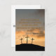 This greeting card displays the "Hebrews 11:1" bible verse scripture KJV in a bold print font with orange letters black outline plus bible citation over a picture that showcases 3 crosses on a hill under a bluish orange coloured sky in this faith based theme from the KJV bible with the words "With God You Can!" on the back. Made with high quality, full colour printing on a 3.5" x 5" (portrait) or 5" x 3.5" (landscape) matte paper made and printed in the USA.