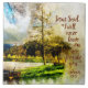 Beautiful inspirational quote artistic ceramic tile depicts a boat in a lake surrounded by nature and features Bible Verse Hebrews 13:5 in the words of Jesus, I will never leave you nor forsake you.*