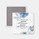 Inspirational scripture magnet depicts a simple floral watercolor design with a modern double frame adorned with blue and grey flowers and leaves. It features Bible Verse Hebrews 13:5, ... God has said, "Never will I leave you, Never will I forsake you." *