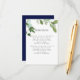 Designed to coordinate with our Hedera boho watercolor chic wedding collection, this elegant botanical wedding card features an illustration of a watercolor ivy leaves and lush foliage topping your custom text accommodation details.