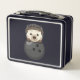 This is a standard metal lunchbox that appears to work just fine. We designed this box ourselves with an uploaded photo and custom text on the front and back. It looks absolutely beautiful except the front of the lunchbox is not centered like it shows in the photo. The print borders don't align with the inset flat part of the box where the preview photo online showed it perfectly centered in there. The back looks nice and centered though.