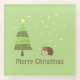 Cute hedgehog with elf hat and Christmas tree on a starry night. Merry Christmas!