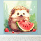 Hedgehog enjoying a piece of watermelon Canvas Print