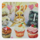 Hedgehog Rabbit Skunk & Cupcakes Watercolor Art Square Sticker