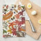 Hedgehogs and autumn forest flora on ivory kitchen towel
