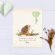 Cottagecore woodland themed valentine featuring illustration of mushrooms, hedgehog, and green heart shaped balloon.