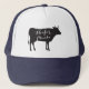 Who doesn't love a good hat? This one is sure to turn heads and bring about some laughs. A black cattle with the white script style words on top make this a one of a kind hat. Choose your favourite colour and start rocking it today.