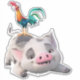 This charming and humourous image captures the delightful duo of Pua, the adorable and plucky pig, and Heihei, the comically clueless rooster, from the animated world of Moana. Here, Heihei stands triumphantly atop Pua, who looks both amused and resigned to his fate as a perch. The graphic showcases their unique personalities: Pua's gentle and loving nature contrasts with Heihei's vibrant and oblivious demeanour.