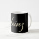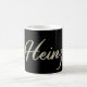 A very beautiful, high-quality personalized mug / coffee mug / tea cup in white gold lettering look on black for Heinz.