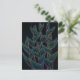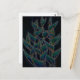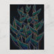 Postcard featuring floral graphic artwork, black version of "Heliconia Rostrata", exotic tropical flowers in night colours - black, navy blue, teal and drops of yellow. Digital art, hand drawn sketch and some digital manipulations, 2017.