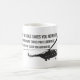A minimalistic mug with a white helicopter silhouette and a quotation: "A mile of road takes you nowhere, a mile of runway takes you elsewhere, a helicopter takes you anywhere."