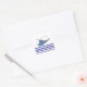 A fun sticker for kids that love helicopters and airplanes. A helicopter ready for lift off. A border of blue and white stripes and little red stars.